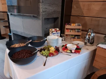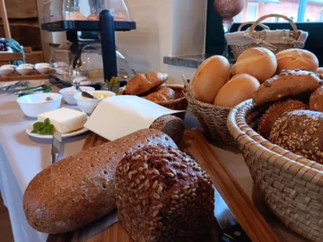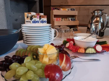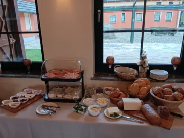 Es erwartet Sie ein reichhaltiges Frühstücksbuffet mit überwiegend regionalen Produkten. Unser Landfrühstück können Sie separat zu Ihrem Aufenthalt buchen.